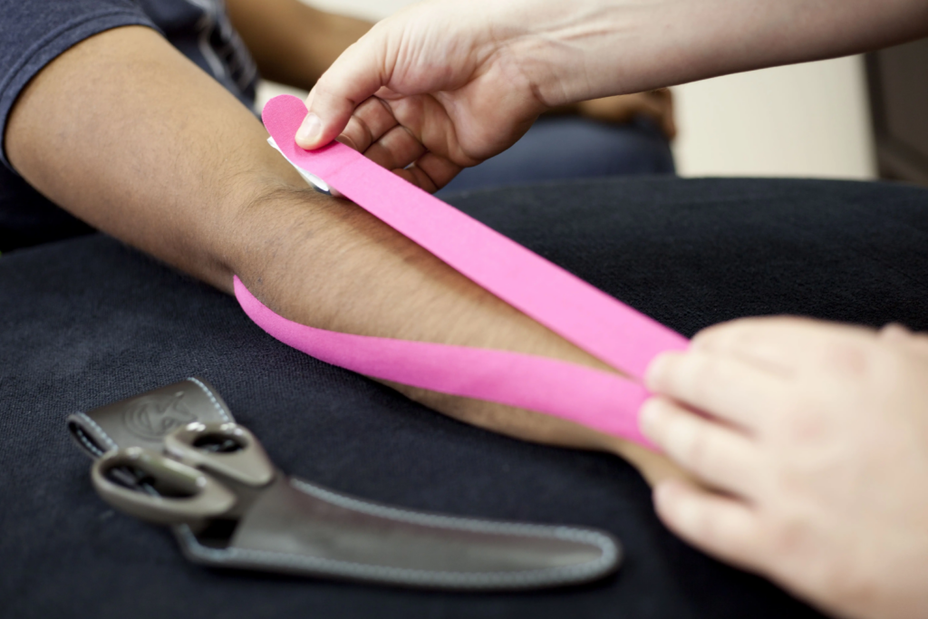 Medical Taping is een methode waarbij een elastische tape op de huid wordt aangebracht om spieren en gewrichten te ondersteunen zonder de beweging te beperken.